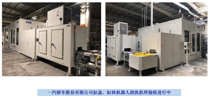一汽轎車股份有限公司缸蓋、缸體機(jī)器人清洗機(jī)終驗(yàn)收進(jìn)行中