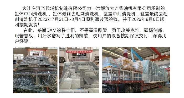 熱烈祝賀一汽大柴缸體缸蓋清洗機(jī)順利發(fā)貨!
